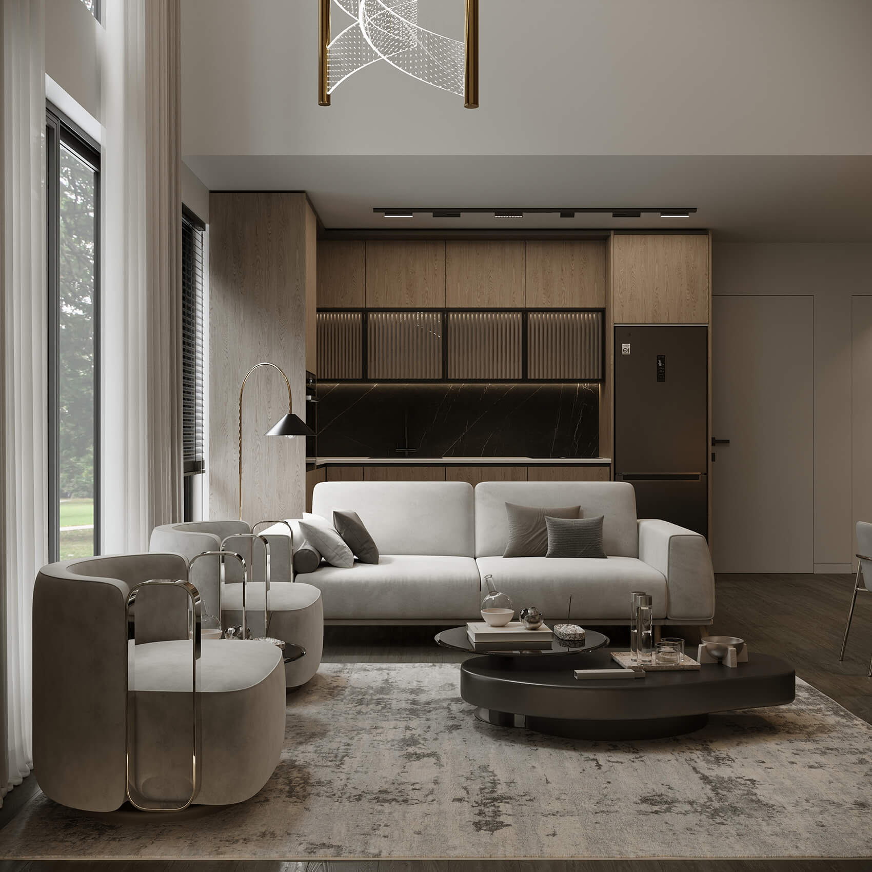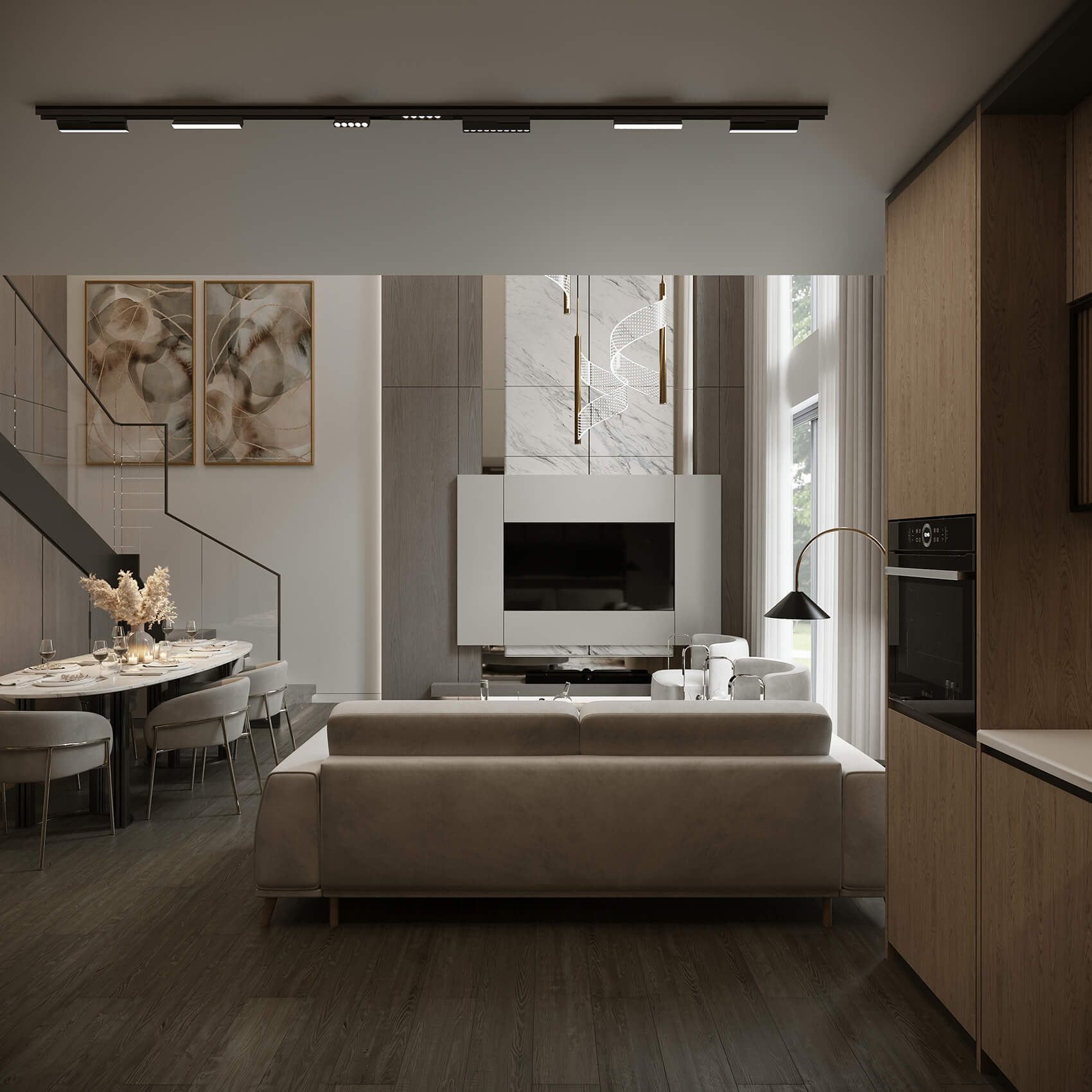 - Yüksek Tavan Mimarisi: Loft konseptinin ruhunu yansıtan yüksek tavanlar ve geniş cam cepheler, gün ışığından maksimum düzeyde yararlanmanızı sağlar.